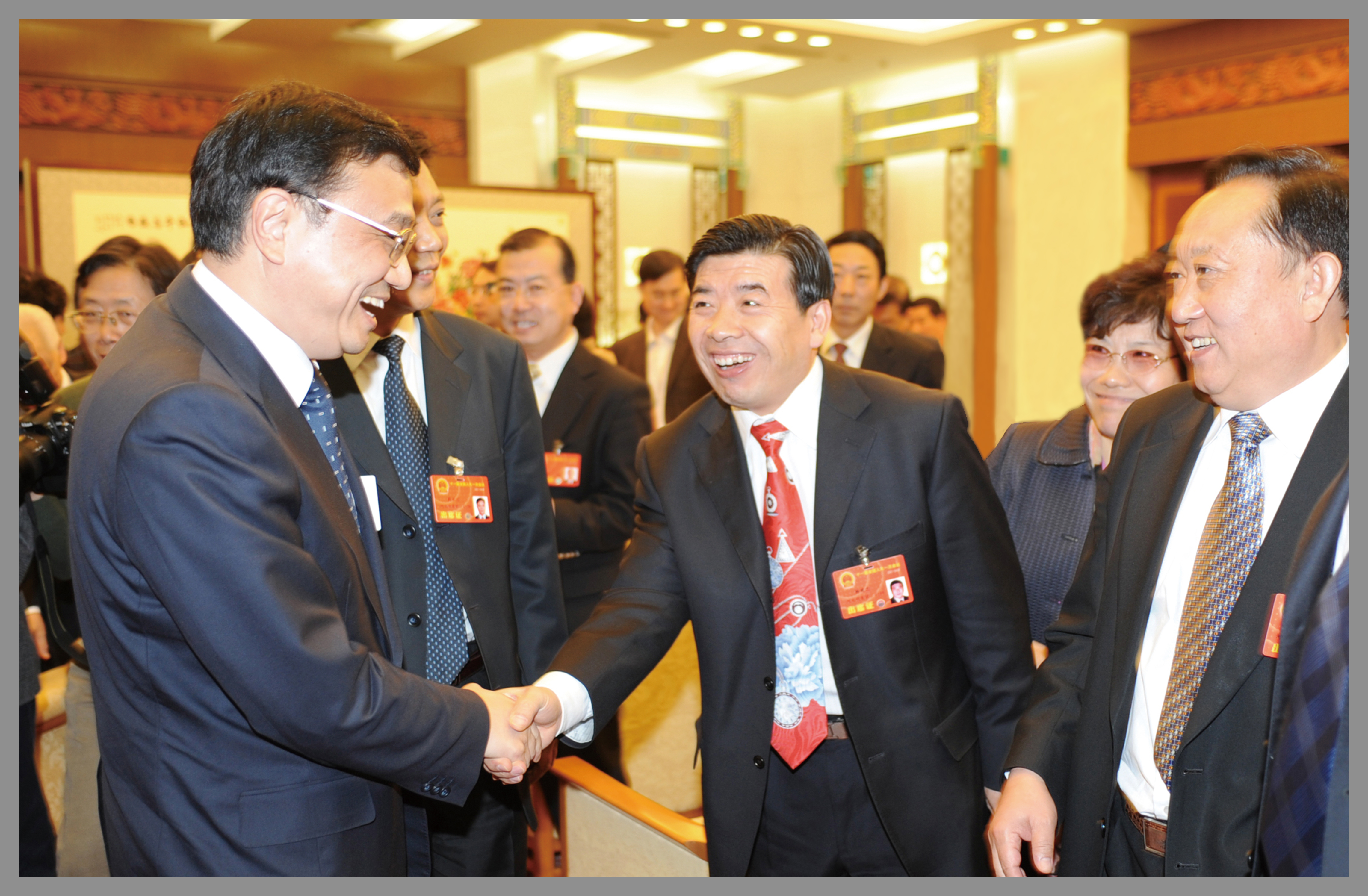 時任中央政治局常委、中央紀(jì)委書記王岐山與楊建忠董事長親切握手
